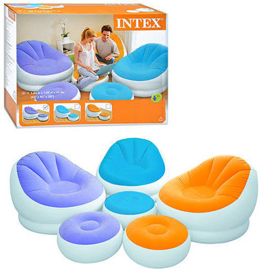 Intex выпустил данное стильное и очень удобное надувное кресло Intex 68572 для людей, которые любят комфортный отдых и стильные вещи! В подлокотник кресла встроен подстаканник! Для максимального комфорта и отдыха, кресло оснащено удобным надувным пуфиком!!!