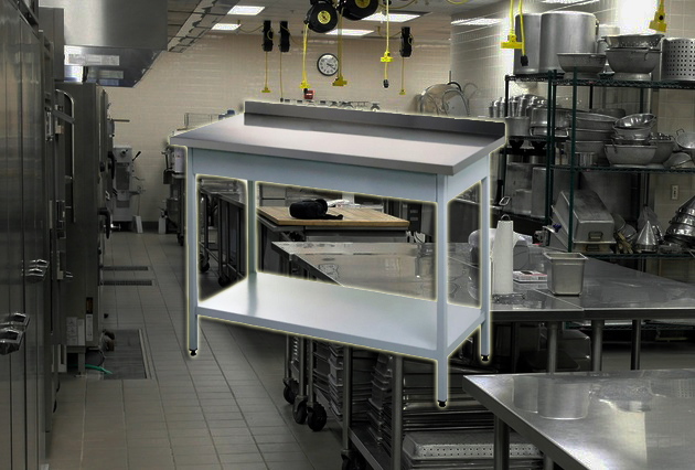 Такой стол не поглощает неприятные запахи. За ним очень просто ухаживать. Наличие борта позволяет не выпадать продуктам за пределы разделочного стола защищая стену от загрязнения. |
