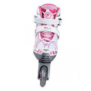 Продается качественный и полный комплект роликовых коньков для девочки. Fila J-one combo 3 set girl 2015 — это не только надежные, удобные и красивые ролики, но также наколенники, налокотники, защита на запястья и шлем, которые будут оберегать ребенка от возможных травм от падений. Эти ролики очень устойчивые, носятся долго благодаря раздвижному механизму.