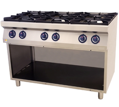 • Плита газовая 6-ти конфорочная на открытой/закрытой базе.