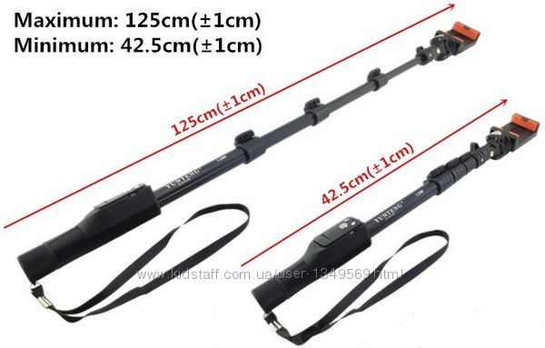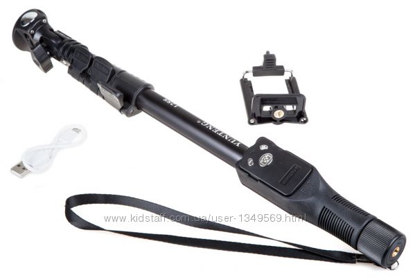 Монопод YT-1288 очень практичный и удобный. Он может вращаться на 180 градусов. В комплекте есть Bluetooth-пульт (черного или оранжевого цвета) имеет аккумулятор а заряжается через USB-кабеля (он есть в комплекте).