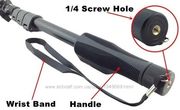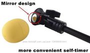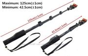 На пульте есть кнопочки, которые позволяют пользоваться функцией Zoom. Так же, имеется Bluetooth кнопка управления спуском, её можно крепить как к моноподу так и держать просто в руке. Имеет красивый дизайн черного цвета с черной ручкой. Монопод легкий и удобный, вы можете брать его с собой куда угодно. С его помощью вы можете делать высококачественные фотографии. Размеры: в сложенном виде - 225 мм, в расширенном - 920 мм. Длина держателя - 42,5 см. Максимальная длина составляет 125 см. Вес - 235г.