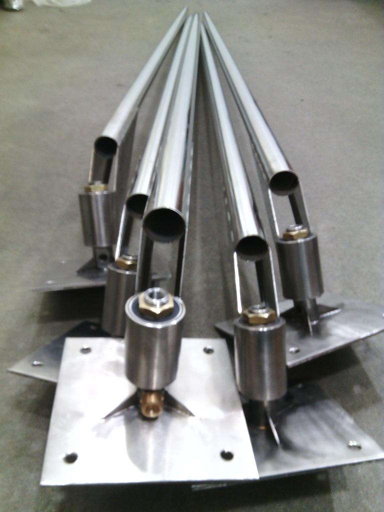Изготавливаем любой длины (от 1,5м до 2м) и любой конфигурации: прямые (угол наклона 90⁰), косые (угол наклона 120⁰), Z-образные. Так что если у вас высокие потолки или вы хотите установить две поворотные консоли на боксе, то мы с легкостью решим этот вопрос!