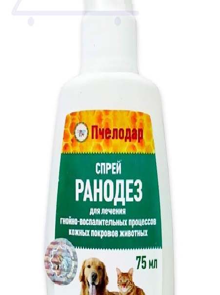Механизм антимикробного действия "Ранодез" основан на блокировании клеточного дыхания. В микроорганизмах происходит подавление активности дыхательной цепи и цикла трикарбоновых кислот (цикла Кребса), а также угнетение других биохимических процессов, что приводит к разрушению их оболочки или цитоплазмической мембраны. В результате микроорганизмы выделяют меньше токсинов, активизируется способность лейкоцитов фагоцитировать микроорганизмы, в связи с чем улучшение общего состояния больного животного возможно еще до выраженного подавления роста микрофлор.Экстракт прополиса ингибирует размножение микробов, препятствуя делению клеток и вызывая деструкцию клеточной стенки бактерий.