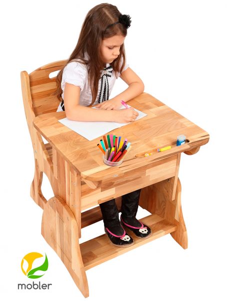 Парты Моблер подходят для детей ростом от 110 см и для старшеклассников. Вся мебель Mobler изготовлена из натурального дерева бука. Микрочастицы бука полностью усваиваются человеческим организмом, что делает материал совершенно безопасным. Эргономичный размер стола (ширина 60, глубина 50) позволит сэкономить пространство в детской комнате.
