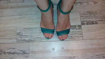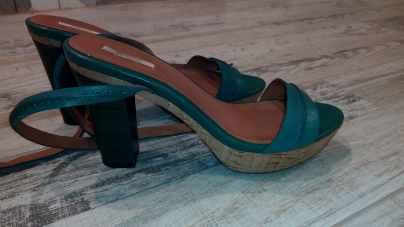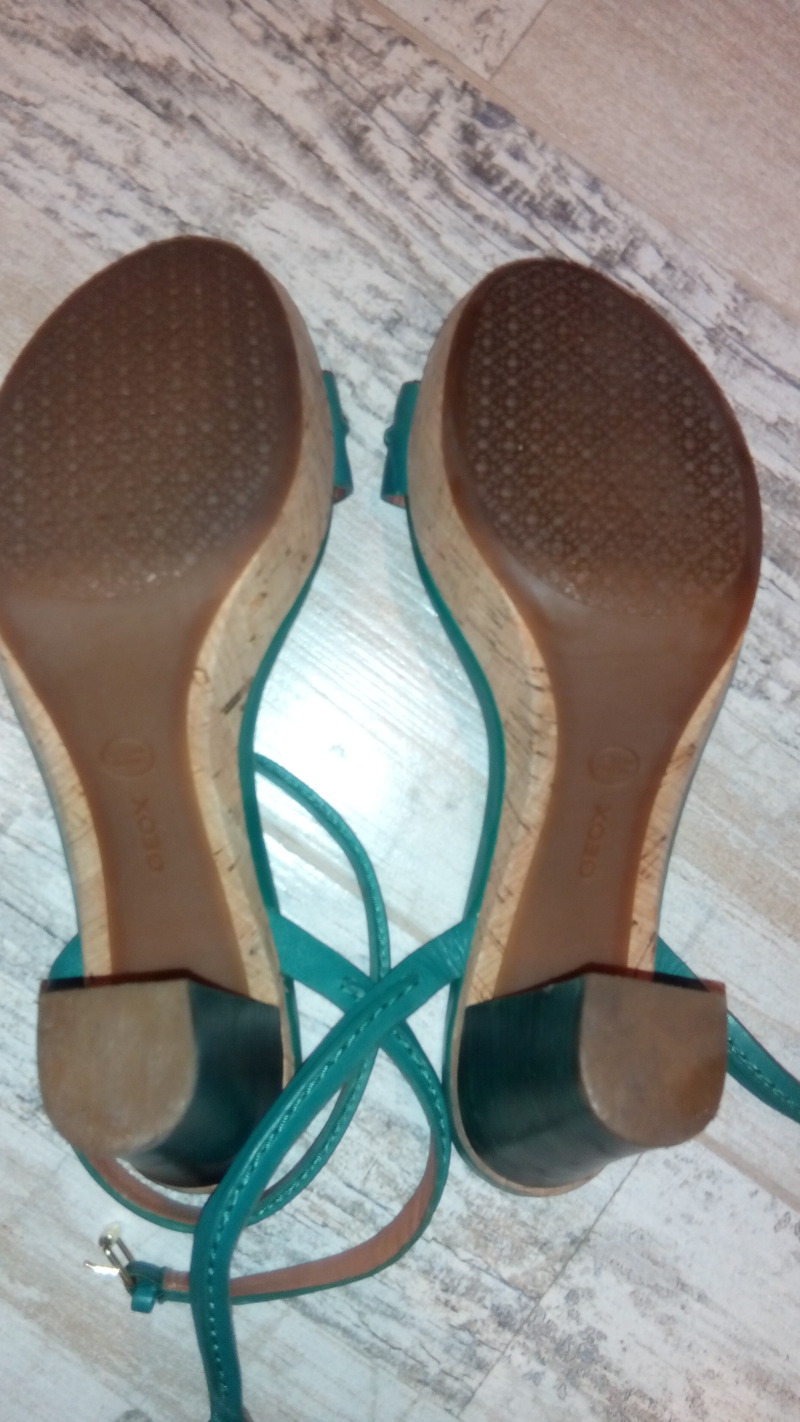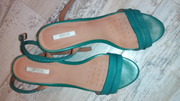 Босоножки одевала пару раз. Состояние новых. Очень красивый зеленый цвет. Длина стельки - 25,5, каблук - 9,5см, платформа - 2см. |
