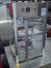Имеется три полки для выкладки изготовлений. Рабочая температура витрины от 30 С до 60 С. Мощность 0,8 кВт. Габаритность тепловой витрины 460х448х785 мм.