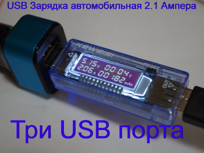 Автомобильная USB зарядка на три выхода, реальных 2.1 Ампера. Отличное качество |