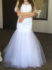 Продам СВАДЕБНОЕ ПЛАТЬЕ, модель "Рыбка", в отличном состоянии, белого цвета. С салона покупалось новое, одевалось один раз, не венчанное. Корсет с гипюром и вышивкой и со стильной ОТКРЫТОЙ спинкой, юбка из фатина. Платье с небольшим шлейфом, что очень удобно для передвижения. Прилагается чехол. Размер: 42-44-46, на рост 167 допускается каблук до 10 см. ТОРГ УМЕСТЕН. Звоните,отвечу на все интересующие Вас вопросы;) |