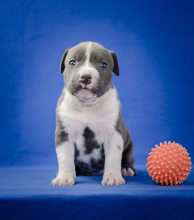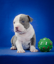 Голубые с белым щенки Американского Стаффордширского Терьера! Дата рождения щенков 25.05.2016 года.От ыставочных родителей. |