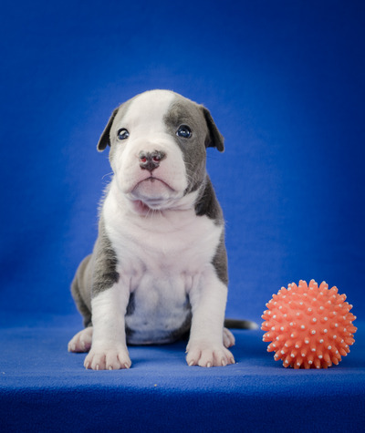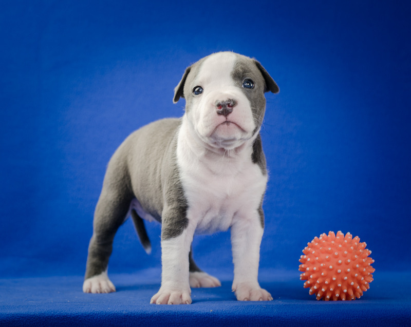 Щенки стаффики отстандартных чистокровных родитей. В продаже белая с голубым девочка . Можете приехать посмотреть на малышку. Малышка Шоу Класса. |