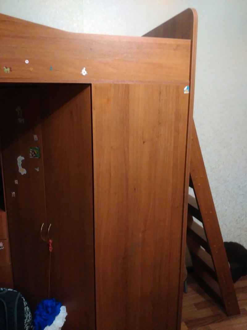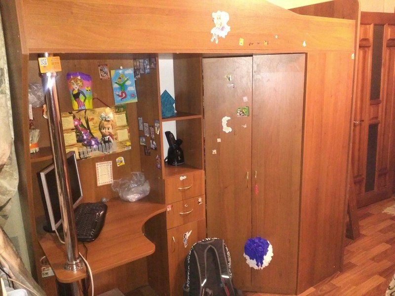 Кровать в хорошем состоянии с ортопедическим матрасом . Большой удобный шкаф , удобное место дня сна |