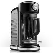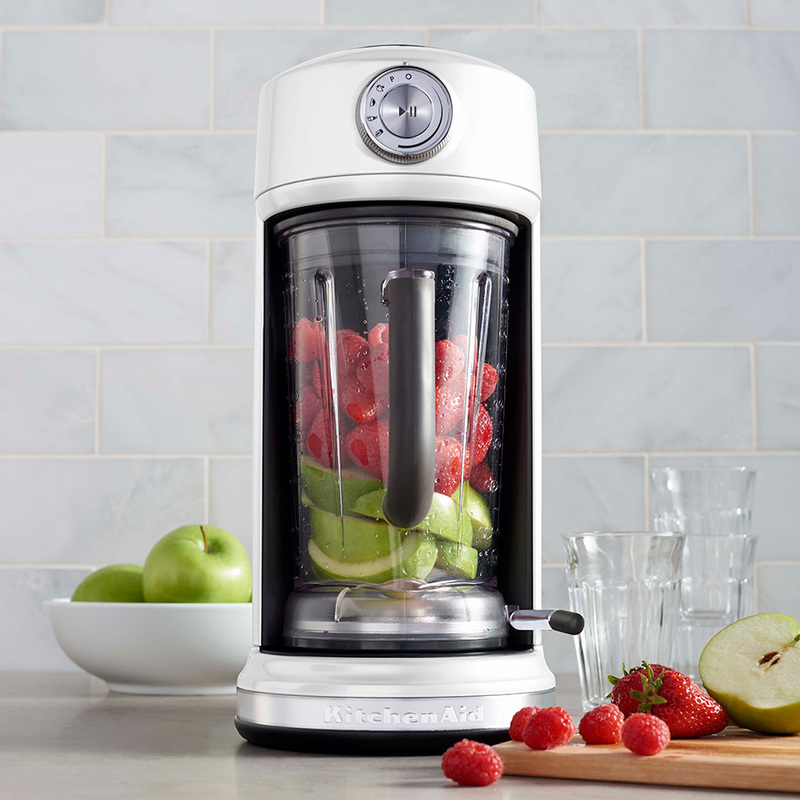 Для изысканных кулинаров и тех, кто просто любит готовить дома, компания KitchenAid выпустила очередной «помощник» – блендер KitchenAid Torrent™ Magnetic Drive Blender. Этот прибор быстро и без лишних усилий измельчит овощи, фрукты, лед, мясо или смешает до однородной массы ингредиенты для блюд. Корпус блендера выполнен из литого металла, поэтому весьма тяжелый. Таким образом, обеспечивается дополнительная устойчивость при работе этого довольно производительного устройства, ведь мощность двигателя – 2 лошадиные силы! Стационарный блендер удобен в пользовании: пока прибор «трудится» над поставленной задачей, ваши руки свободны и вы можете заниматься чем-то другим. Магнитный механизм обеспечивает правильную фиксацию чаши во время работы, а четыре программные режима позволяют автоматически установить оптимальную скорость и время работы для приготовления различного рода смесей: напитков со льдом, коктейлей, супов/соусов или соков. В комплекте к каждому блендеру вы найдете кувшин, крышку и мерный стакан.