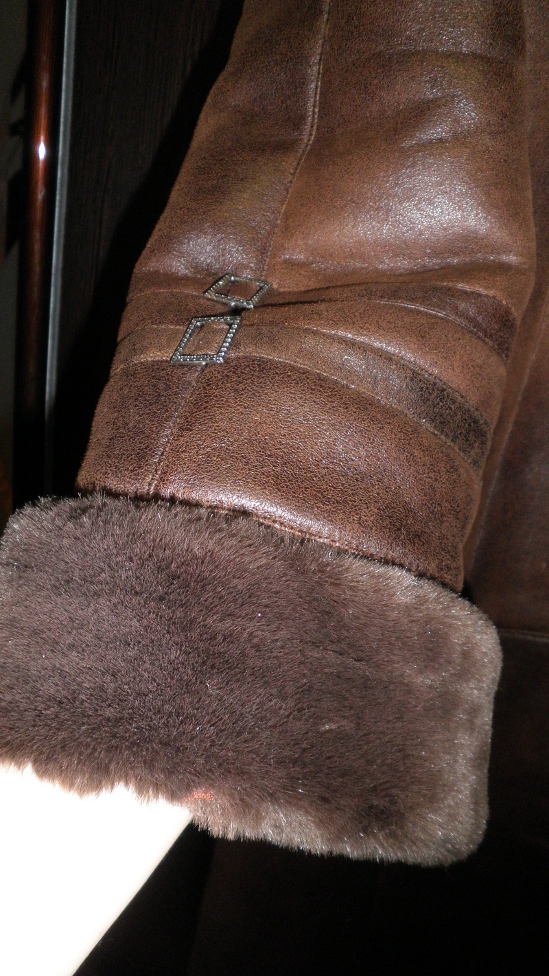 Дубленочка очень тепленькая в отличном состоянии, нигде не потертая...Темнокоричневого цвета.46-48, перешлю.. |