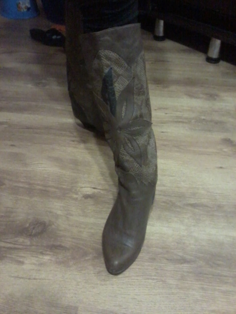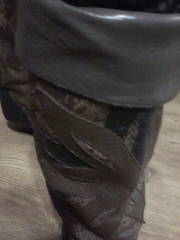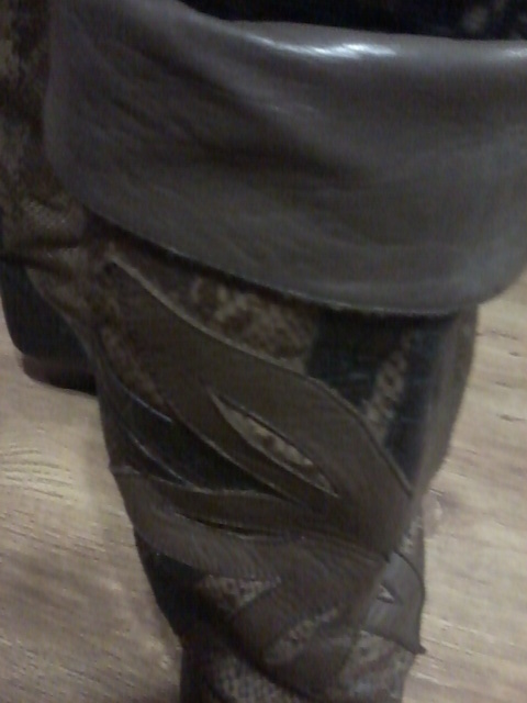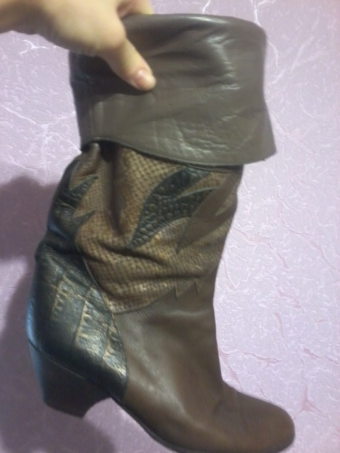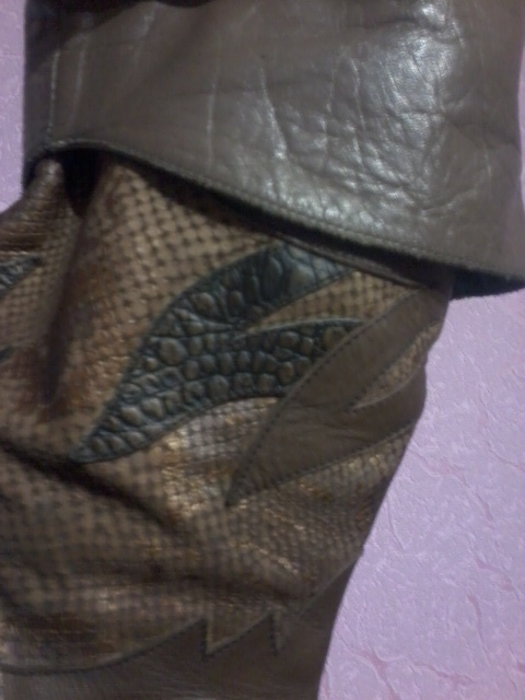 Сапоги осенние, очень красивые, 90% питоньей кожи, низ кожа.Внутри кожа.Подошва кожаная.Цвет пепельно-коричневый.Узор очень красивый.Размер 37 1/2, Италия.Смотряться очень дорого.В отличном состоянии.Нигде не потерто, все как новое.Продаю дешево поскольку не сезон. |