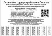 Польское агентство по трудоустройству " Euro Jobs Info " помогает украинцам найти работу в Польше. В базе есть много вакансий от Польских работодателей. Вакансии есть как не требующие особой квалификации так и для квалифицированных работников. Вся работа официальная, с подписанием договора. Также есть горящие вакансии, для тех кто уже имеет визу и готов выезжать. Идет полное сопровождение. Оформляется приглашение на работу в Польшу от работодателя. Также сопровождение и помощь в оформлении документов для получения визы в Украине. Помогаем стать на очередь в Виз центр, заполняем анкету. Работаем со всеми регионами Украины. Бесплатная консультация по документам. Пишите в комментариях к объявлению вопросы. Есть сайт где можно посмотреть вакансии. Или сразу звоните по телефону к объявлению.