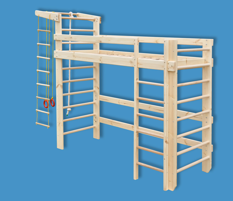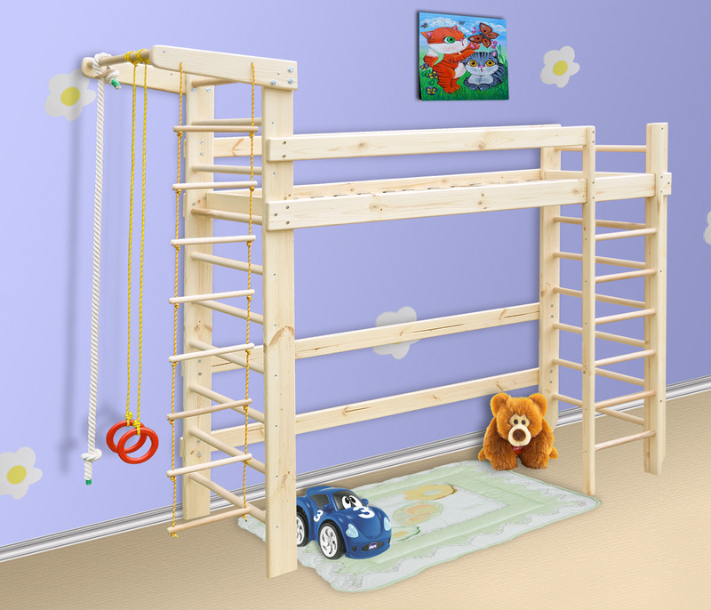 Спортивная кровать-чердак из сосны, спортивный уголок - Детская мебель