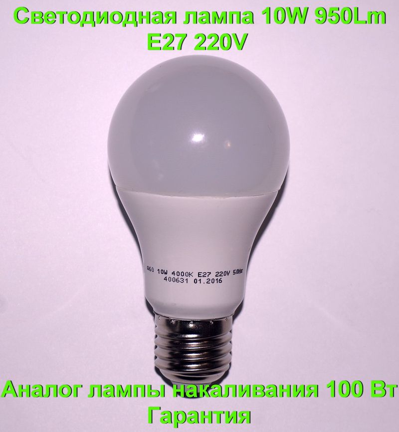 Светодиодная лампа 10W 950Lm E27 220V вольт с гарантией - Освещение, люстры, лампы