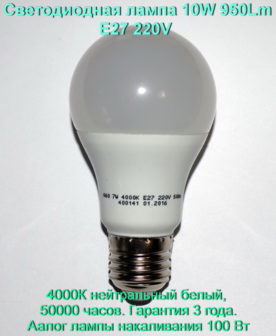 Светодиодная лампа 7W 650Lm E27 220V вольт с гарантией. 7W 650Lm 4000К нейтральный белый, 50000 часов, аналог лампы накаливания 60 Вт. Колба белая, корпус пластик алюминий. Размер диаметр Ø60mm, длина 112mm. Гарантия. 70грн. - 1шт. 650грн.-10 шт. 550грн. - 10 шт. без гарантии http://led-ua.at.ua/index/7w_e27/0-21 |