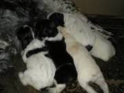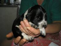 Продаются щенки русского охотничьего спаниеля! 3 мальчика и 1 девочка. Окрас белый с черным (пегие)и белый с коричневыми пятнышками. Папа рабочий. Хвостики купированы. Очень активные и крупненькие. Радились 23/01/2011г. Сейчас им всего 2 недели и продажа состоится в 5 недель. |