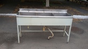 Трехсекционная мойка из нержавейки, каркас крашеный, отверстия под смеситель над каждой мойкой. Размер 1500*500*850/300 мм. |