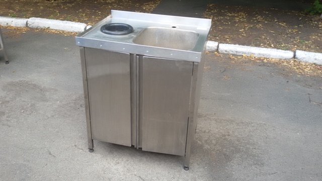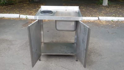 Односекционная штампованная мойка 800*600*900/300 мм, боковые стороны мойки обшиты листами из нержавеющей стали, отверстие для сбора мусора, распашные двери, круговой борт. |