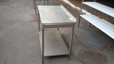 Стол 1300*600*850 мм разделочный бу с пристенным бортом и нижней полкой, все выполнено из нержавеющей стали. Предназначен для обработки, разделки или упаковки пищевых продуктов различного происхождения. |