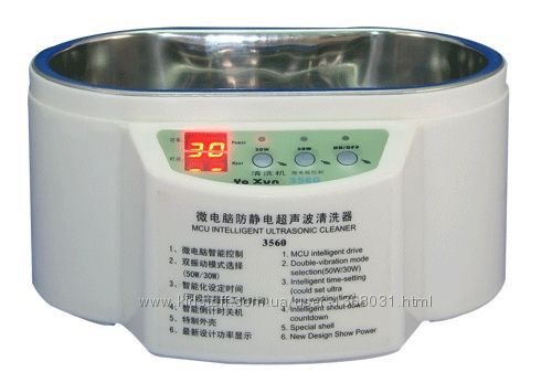 Ультразвуковая ванна Ya Xun – 3560 Бюджетная ультразвуковая ванна снабжена светодиодными индикаторами и дисплеем, с двумя режимами работы (30 и 50 Вт) позволяет подобрать оптимальный режим обработки изделия.