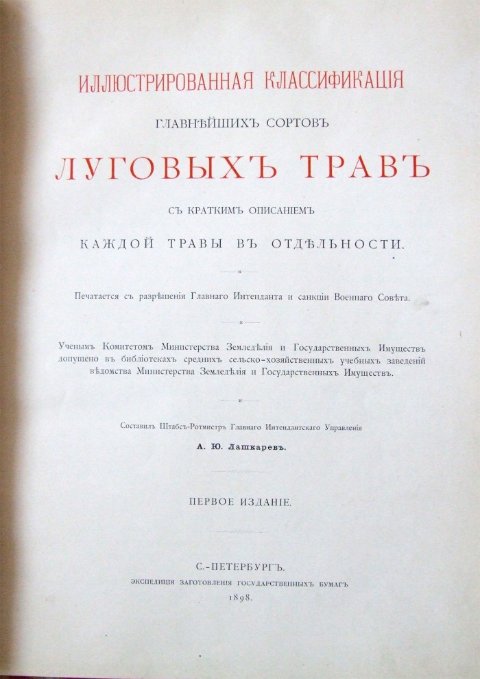 Иллюстрированная классификация главнейших сортов луговых трав....... - Антикварные книги, манускрипты