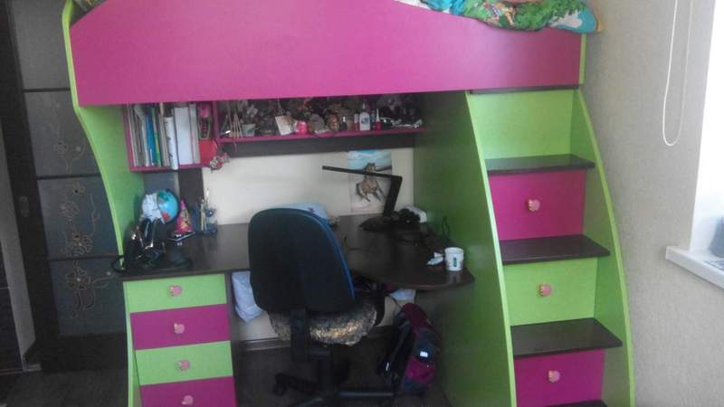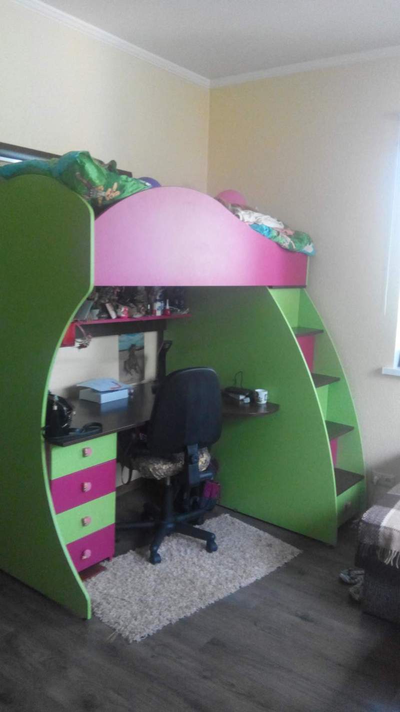 Шикарнючая кровать, в ступеньках полочки для одежды. Ортопедический матрас Activ Baby. Размер кровати : Высота -190; Длинна - 185; Ширина - 85. |