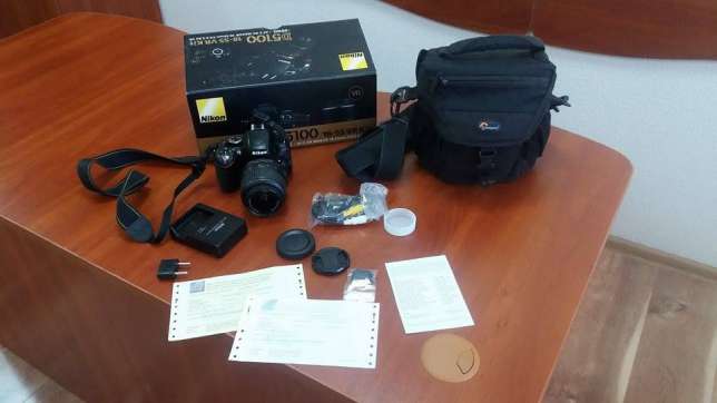 Фотоаппарат Nikon D5100 Kit AF-S 18-55 f3,5-5,6G VR., об'єктив Kit AF-S 18-55 f3,5-5,6G VR, акумулятор, ремінь, зарядний пристрій, кришка для об'єктива, фото сумка Lovepro . |