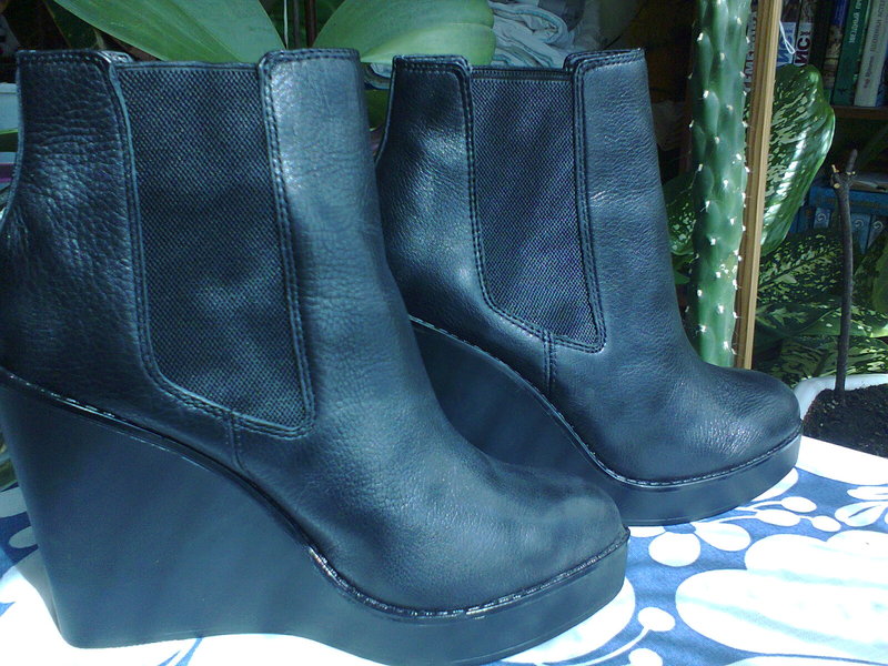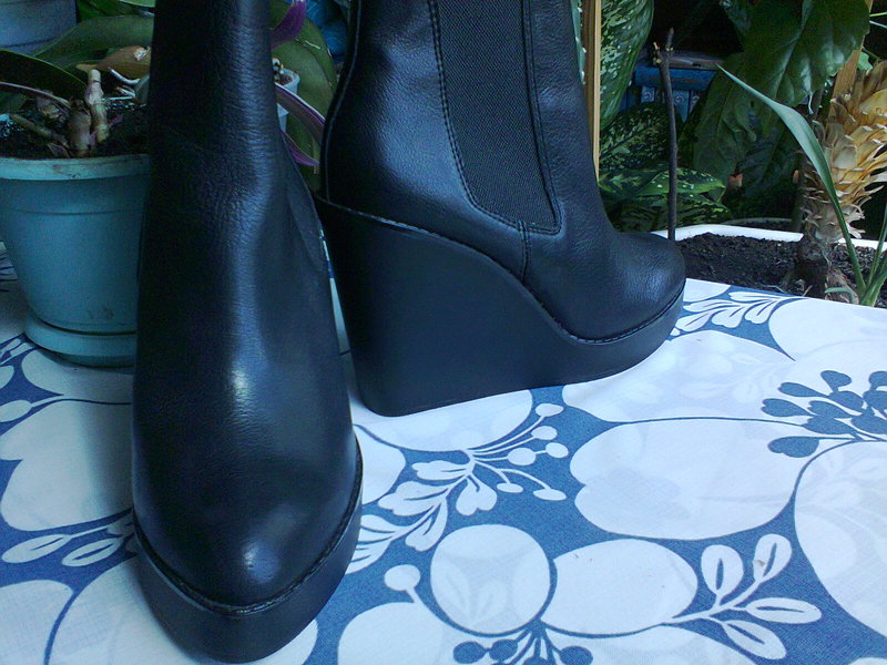 Новые демисезонные полусапожки черного цвета на танкетке. Размер 35,5. Длина по ступне - 21 см, ширина - 8 см |