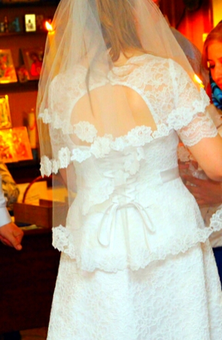 А- силует, Білосніжно біле, рукав в 3/4, спинка наполовину відкрита, один гудзик та ниточка. Круживне. Підкладка атласна. Підходить на розмір 40 -44. |