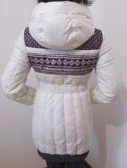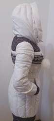 Продаю б/у пуховик женский белого цвета со вставкой-орнамент. Очень теплый, удобный и стильный. Длина пуховика 80 см. Размер указан М, ношу одежду или S или M. Грудь - 95 см, талия - 78 см. Длина рукава - 60 см. Ширина плеч - 40 см. По бокам молнии. Пуховик с поясом. Со мной можно связаться так же по Viber + 380932302774 |
