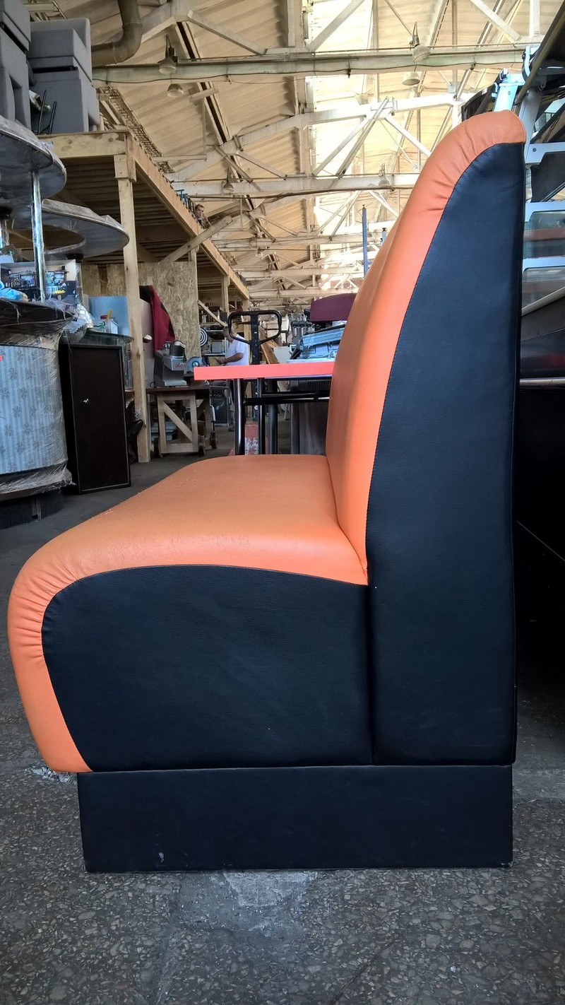 Продам диван бу для ресторана, кофейни, кафе, бара, пиццерии и заведений общественного питания. Данная модель, яркого цвета, гармонично впишется в Ваш интерьер. Диван в хорошем состоянии, каркас изготовлен из натурального дерева. Посетители с комфортом , и с удовольствием разместятся на мягкой, удобной мебели. Размеры: 220х700х860мм. Материал-кожзаменитель (спинка оранжевая, задняя часть спинки и низ каркаса черного цвета) Звоните по номеру 0981799378-Светлана Распродажа диванов б/у, мягкая мебель б/у, диваны недорого б/у |