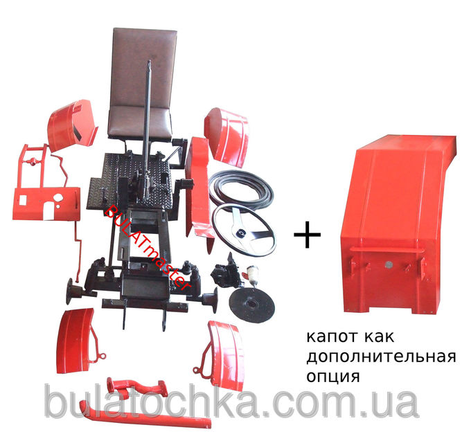 Предлагаем Вашему вниманию комплект для переделки мотоблока в трактор - универсальное сельскохозяйственное оборудование, изготовленное на базе мотоблока. По своему функциональному назначению мототракторы полностью повторяют тяжелые мотоблоки с водяным охлаждением. Главной особенностью этого комплекта является то, что редуктор мотоблока не переворачивается, а вкатывается в раму так как и на мотоблоке в своем рабочем положении, уменьшенный радиус разворота на одном месте, увеличенный дорожный клиренс до 210мм за счет новой передней балки и есть возможность использовать заднюю заводскую навеску идущую в комплекте с мотоблоком! Дополнительно можно купить комплект заднего подъемного механизма (трехточечная навеска), передний подъемный механизм, гидравлику, прицеп для мототрактора, картофелекопалку, грабли и т.д. Минитрактор из мотоблока имеет простой и надежный механизм, и значительно облегчит Вам работу и сэкономит время. Комплект для переделки мотоблока в трактор (комплект EXPERT) цена 8027,50 грн. Технические характеристики и цены на другие комплекты для переделки мотоблока в минитрактор посмотреть можно на сайте. https://www.youtube.com/channel/UC-wGHI7OMJKRqSnjCrbeWMQ http://bulatochka.com.ua/p327919120-komplekt-dlya-peredelki.html