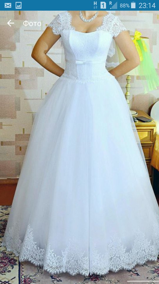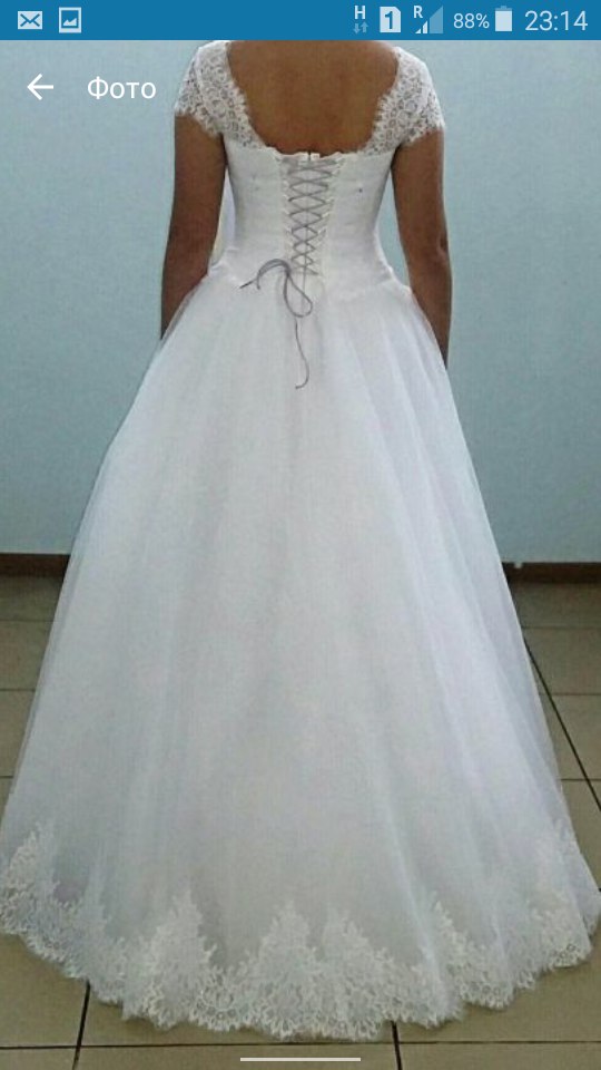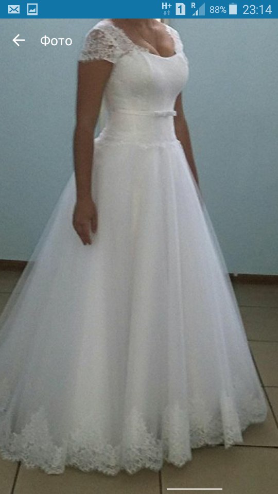 Платье вашей мечты!Покупала в брендовом салоне Оксаны Мухи во Львове.( фото не из салона поскольку фотографировать не разрешают) Отдаю за пол цены!Белоснежное в пол, на рост 160 + каблук 5-7 сантиметров, 44-46 размер, в комплекте со шнурком(шнурок белый), одето один раз, без пятен и повреждений, в идеальном состоянии. Ложится по фигуре идеально, ничего не мешает движениям. Сзади не большой шлейф. Можно подогнать по росту, кружева на подоле сьемные. Прошло химчистку, не венчанное. Круг в подарок. Самовывоз или отправка новой почтой. Возможен торг. |