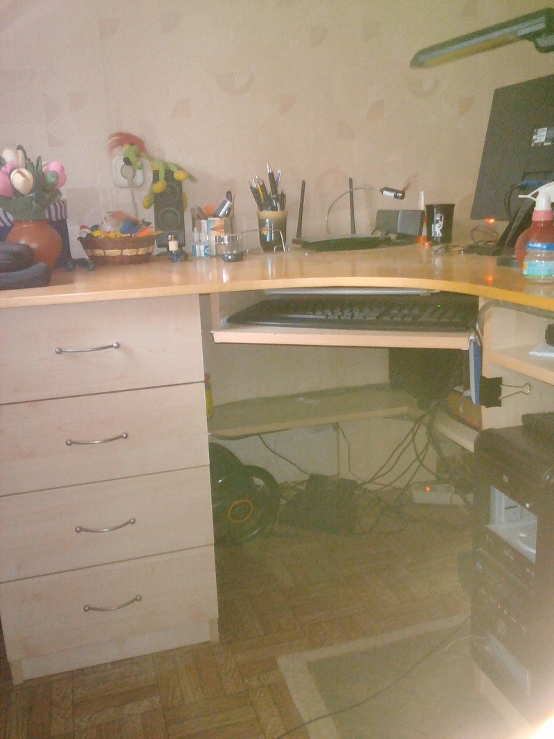 Продам компьютерный стол. Размеры стола 130 см. на 130 см. Цвет стола - светлый беж. Очень вместительный. Есть 4 выдвижных ящика, ниша для системного блока, ниша для модема, внизу полка для дисков, книг, выдвижная полка для компьютерной клавиатуры. Стол в отличном состоянии, сделанный из качественных материалов. Стол в разборном состоянии, находиться в городе Вишневом, Киево-Святошинский район. Цена стола 1500 грн. |