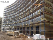 Строительные леса - это конструкция устанавливаемая у фасадов зданий для пребывания работников и материала на необходимой высоте. Леса используются при фасадных, реставрационных, кладочных работах.