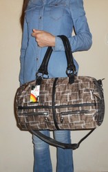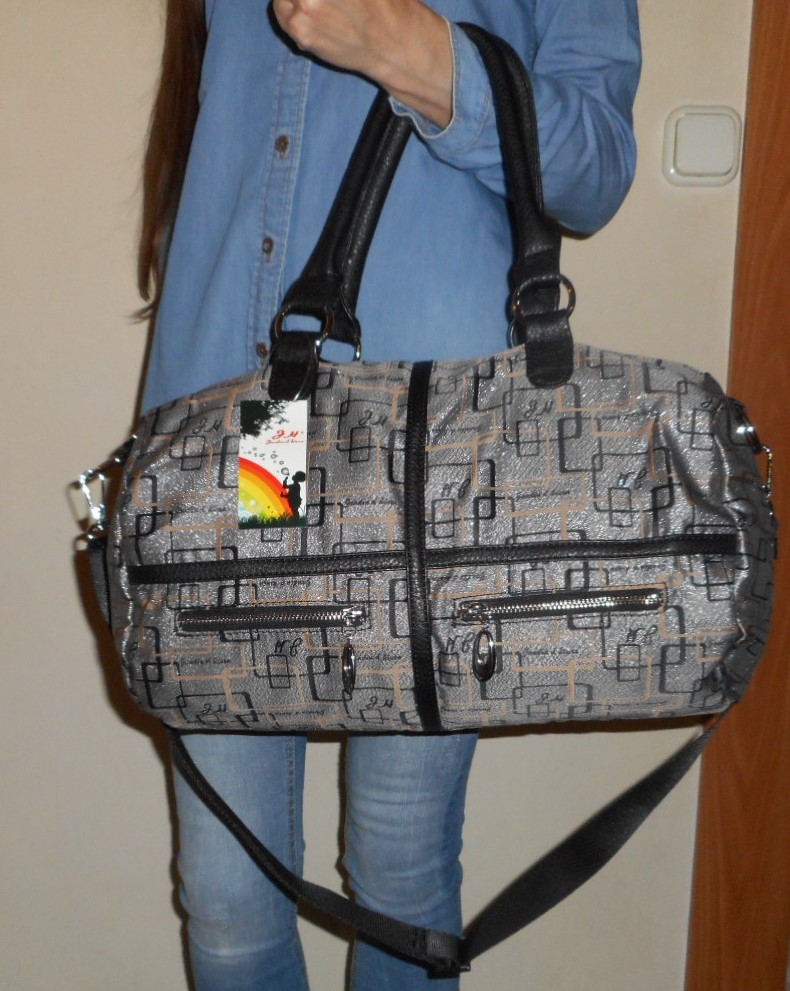 женская большая чорная (pu) с серым коричневым сумка - Женские сумки, аксессуары