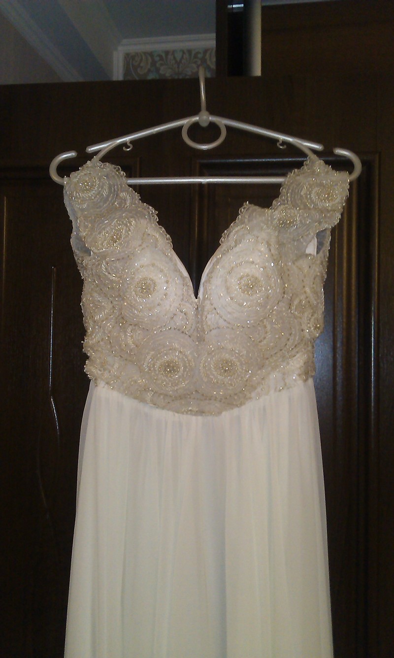 Платье цвета айвори, свадьба 2015. Покупалось в салоне Crystal во Львове. В очень хорошем состоянии, после химчистки. На спине вырез до пояса, внутри лифа вшиты чашечки. Лиф из кружева, расшитого бисером и стеклярусом. Юбка из шифона на непрозрачном чехле, спереди есть разрез. К платью идёт пояс с вышивкой, с удовольствием отдам в подарок митенки и / или подушечку для колец, всё в цвете айвори. Если зантересовались, могу прислать больше фото |