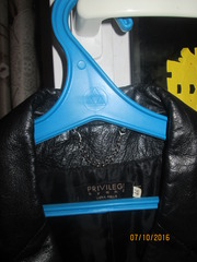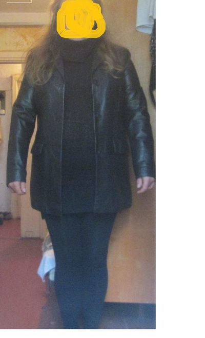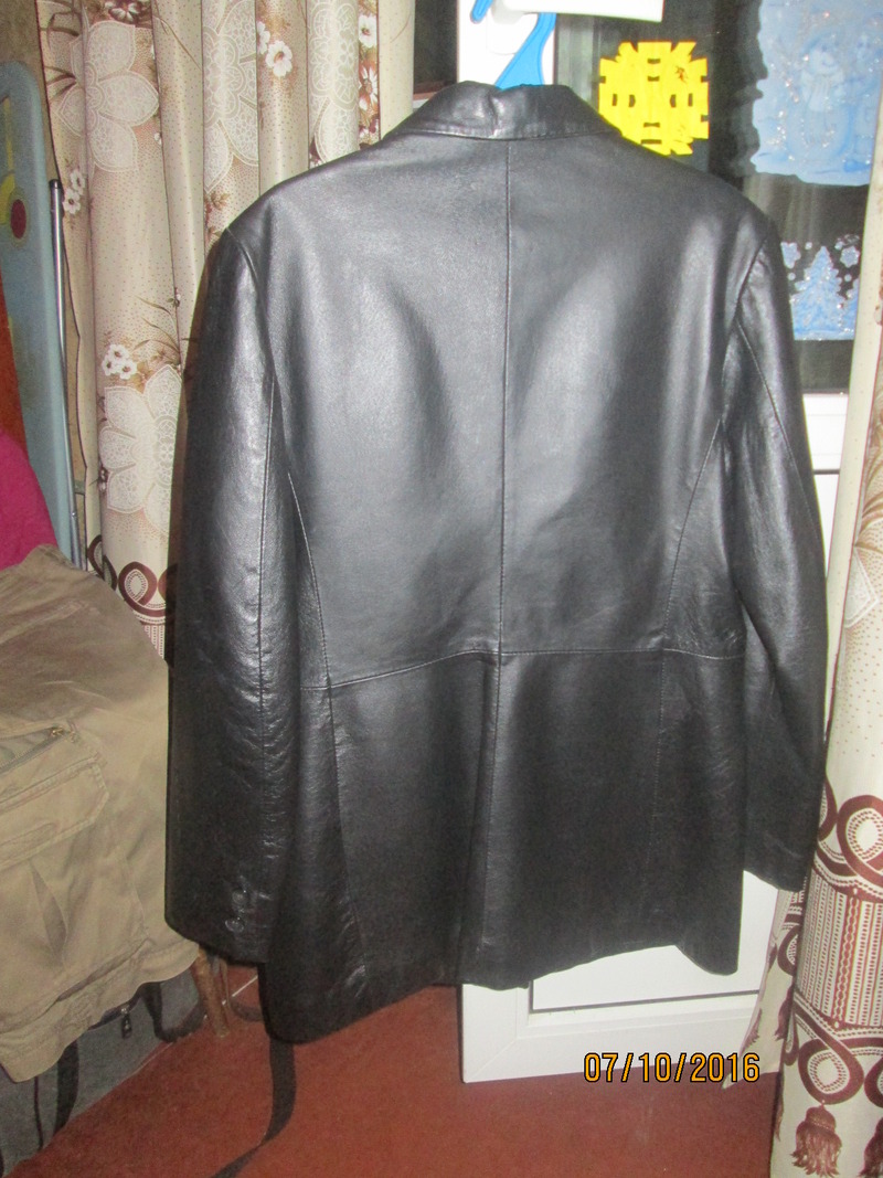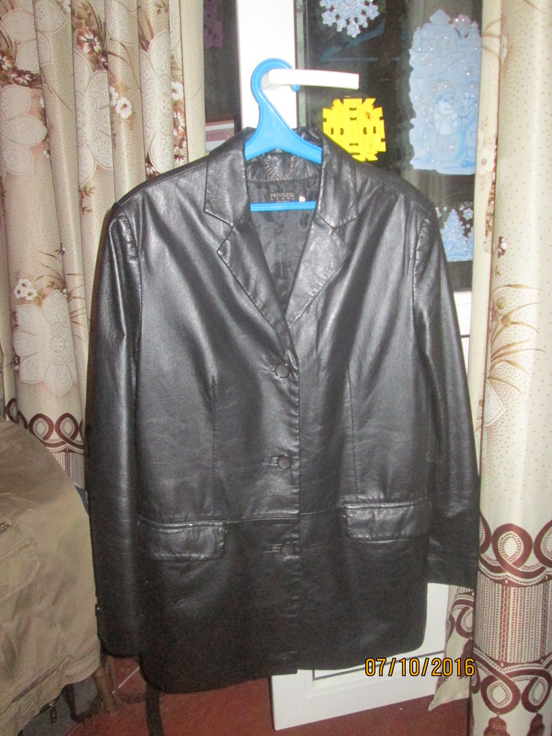 Куртка черная, в виде удлиненного пиджака, на пуговицах, с карманами, практически новая (носилась около месяца). Кожа средней толщины, мягкая, без потертостей!!! Размер 46-48, длина 76 см, длина рукава 62 см, плечо 15,5 см. |