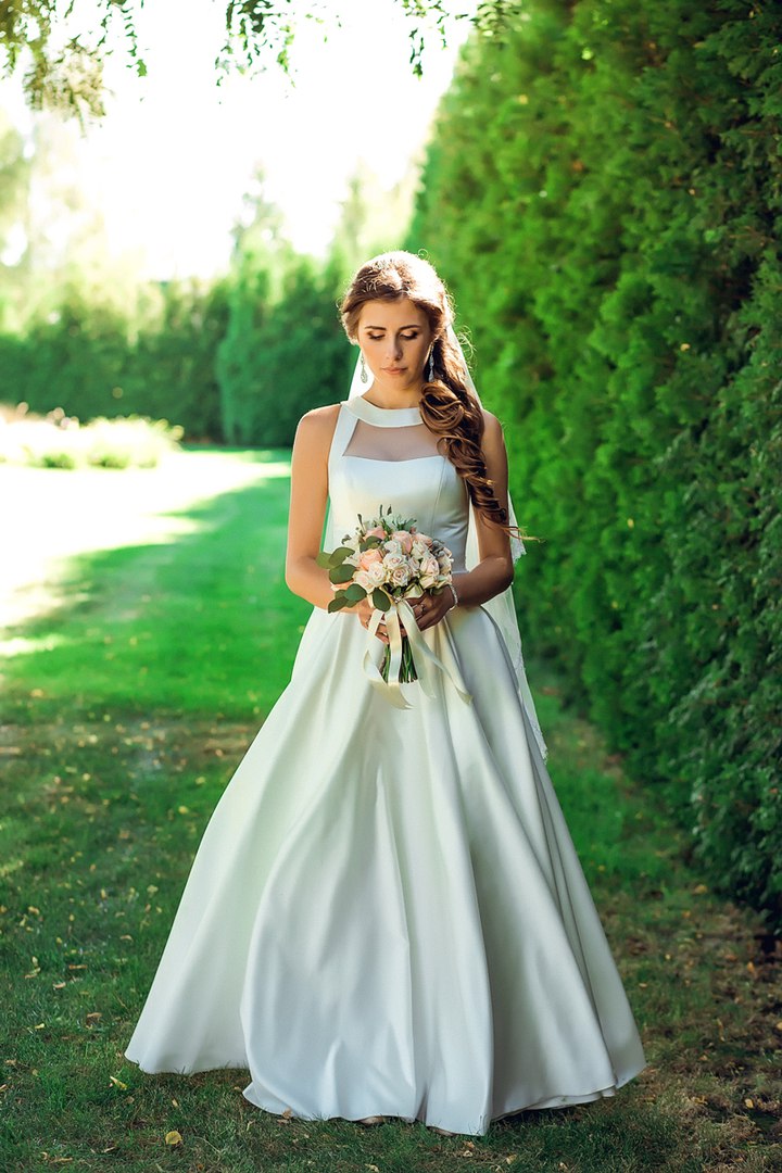 Свадебное атласное платье цвета айвори с карманами - Свадебные платья