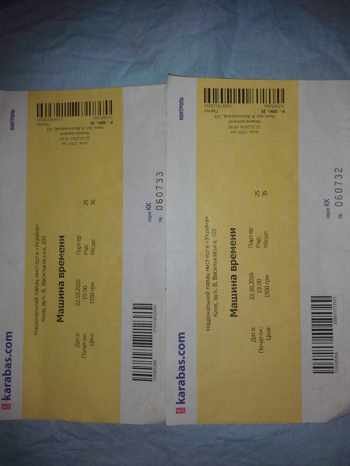 Продаю 2 билета на концерт в Киеве МАШИНА ВРЕМЕНИ. ДАТА 22.10.2016. - Билеты на концерты