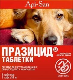 Универсальный пр-т действует на все фазы развития круглых и ленточных гельминтов у СОБАК. Входят в состав препарата: празиквантел и пирантел.