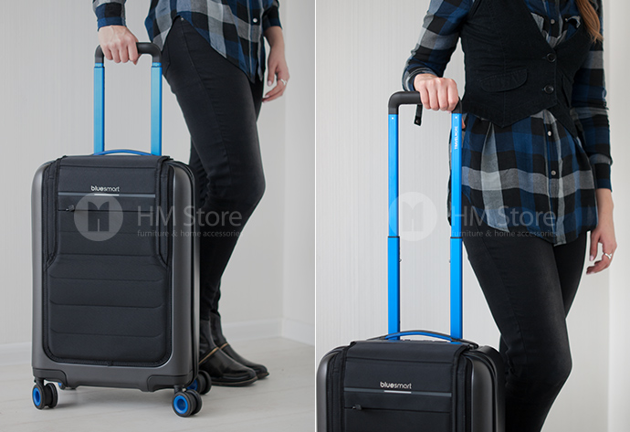 Умный чемодан Bluesmart One – это самый высокотехнологичный чемодан для путешествий в мире! Потеря багажа – один из самых страшных кошмаров для путешественника в чужой стране. Теперь вы всегда будете знать где находится ваш чемодан! В корпусе Bluesmart Edition установлена SIM-карта, используя специальное приложение, вы сможете отслеживать местоположения вашего чемодана по GPS. Если расстояние между вами и багажом превысит установленный предел, на ваш смартфон моментально прийдет уведомление. Так же, используя одноименное приложение, вы будете видеть напоминание о номере рейса и времени вылета и сможете отследить количество пребывании в различных странах и аэропортах. Вам не нужно тратить время на взвешивание багажа в аэропорту. Для этого в ручку «умного» чемодана встроен датчик определяющий массу чемодана.