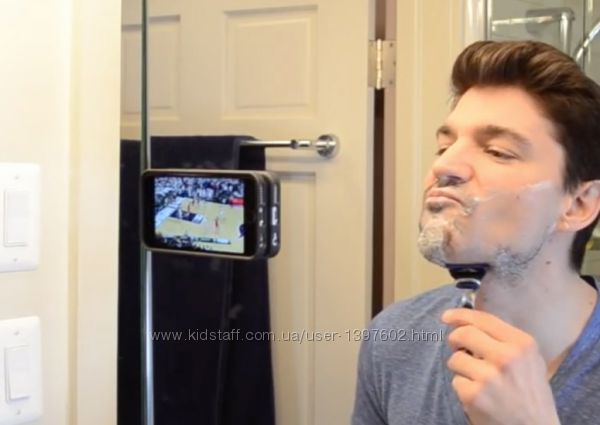 К примеру, iPhone в чехле можно приклеить на зеркале и смотреть любимую игру, пока занимаетесь уборкой, или приводите себя в порядок по утрам. Подвесив смартфон к дверце кухонного шкафа, можно готовить различные блюда по видео-рецептам, не опасаясь, что на экран телефона попадет раскаленное масло со сковороды.