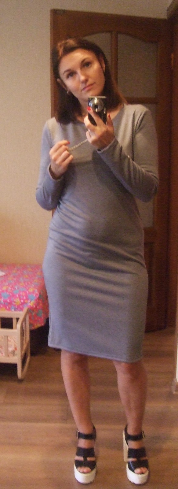 Классическое серое платье ниже колена - Женская одежда