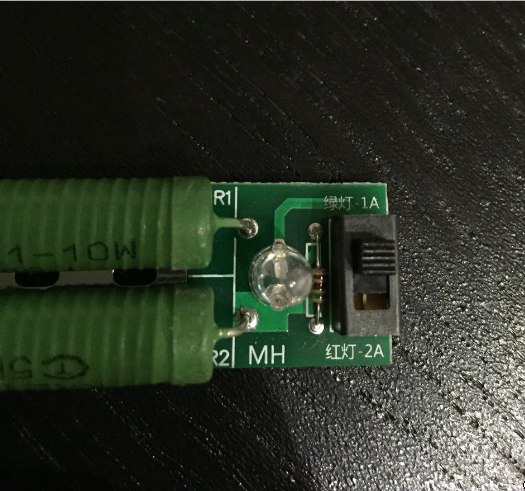 В режиме нагрузки 1А, горит зелёный индикатор. В режиме нагрузки 2А, горит красный индикатор.