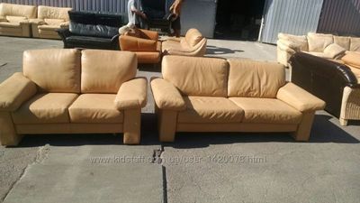 №01353.Диван тройка и двойка бежевый кожаный бу из Голландии. - Офисная мебель